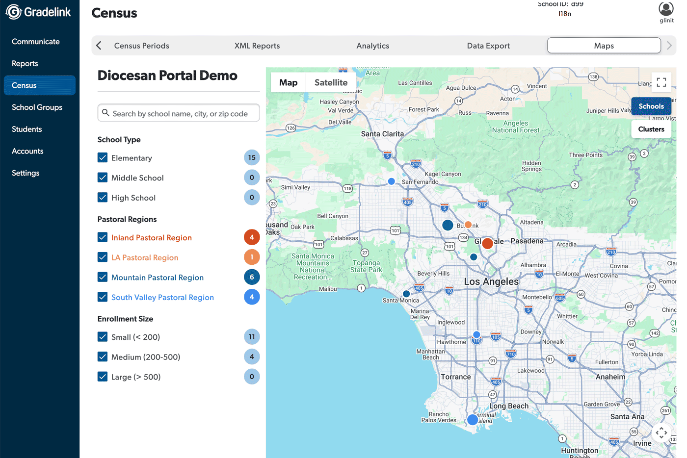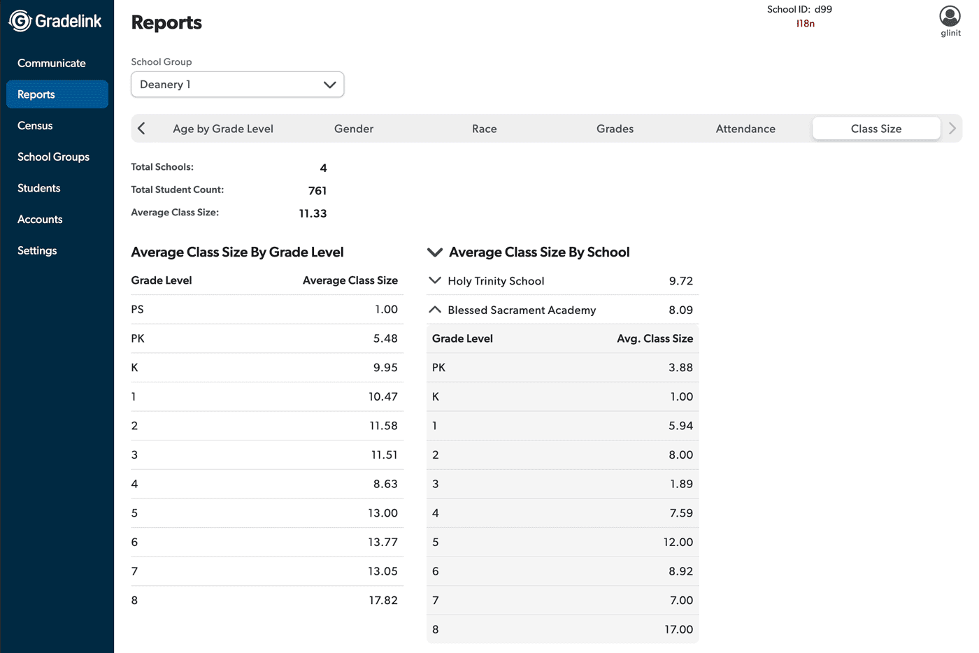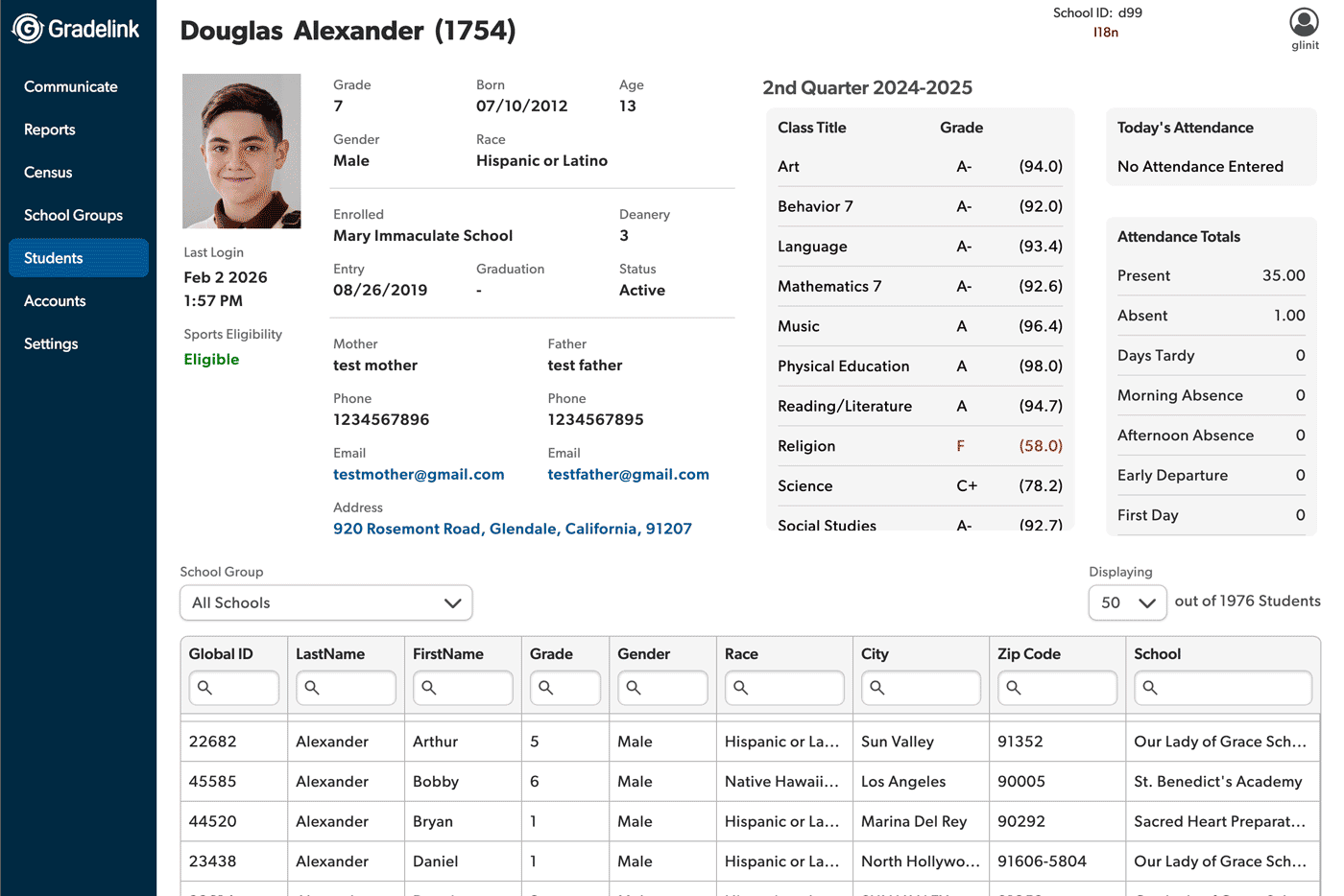 Gradelink’s District Login provides superintendents a district/diocesan gateway with on-demand access to powerful reports, including demographics, academic performance, attendance, and student data from any school in the district or diocese. Run reports for all of your schools, or for specific sub-groups which can be configured by staff members. Custom development is also available to suit your particular needs, so contact us today.